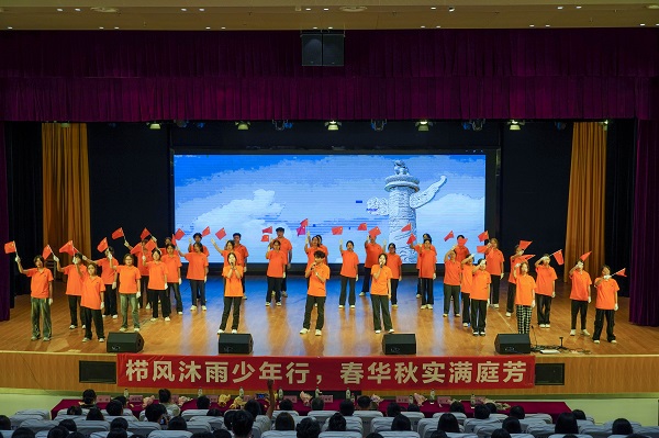 见面会现场气氛热烈,学生合唱团深情演唱了《我和我的祖国》《如愿》,歌声真挚动人,表达了对祖国的深情与敬意。