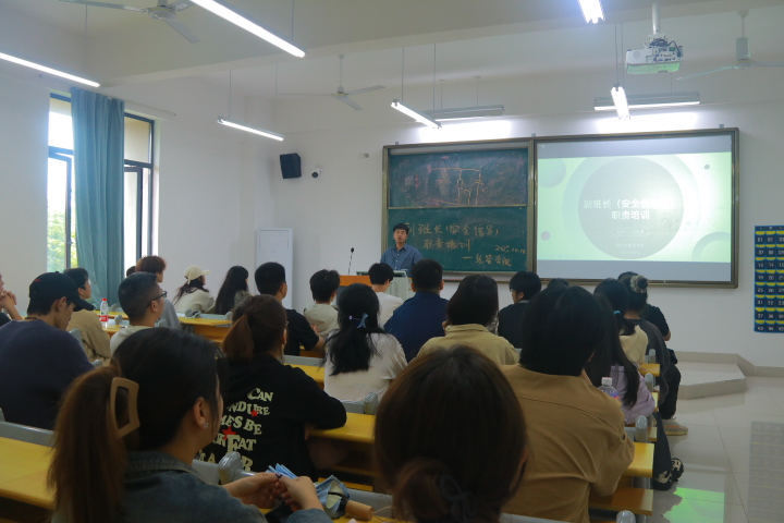 为深入贯彻落实校园安全工作要求,强化班级安全管理体系建设,切实提升学生安全防范意识和应急处置能力,1016日中午12,经济与管理学院在J3教学楼203教室开展了班级安全信息员专题教育培训会。本次会议由学院辅导员邓忻吾主讲,学院班级副班长参加。