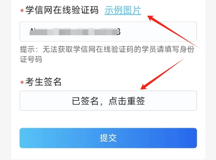 填写学信网在线验证码,以便审核。点签字保存后,提交