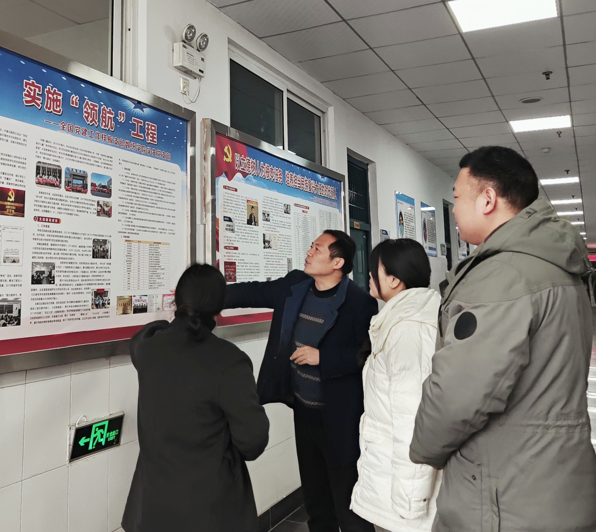 2023323日,理工学部主任傅朝金、党总支副书记肖圣芳,教工党支部书记朱翠红、学生党支部书记罗德天一行前往湖北师范大学数学与统计学院学习全国样板支部建设的工作经验。数学与统计学院也非常重视此次经验交流并专门组织了交流会,院长吴爱龙、党委书记罗四清、党委副书记王本成、综合办公室主任续林、学生第一党支部书记何金燕、辅导员杨宇森出席了此次交流会,并在会议室举行了隆重的欢迎仪式。随后何金燕老师带领我们参观了数学与统计学院党员活动室以及样板支部建设的展板,并交流了他们获评“全国首批高校建设工作样板支部”的宝贵经验。