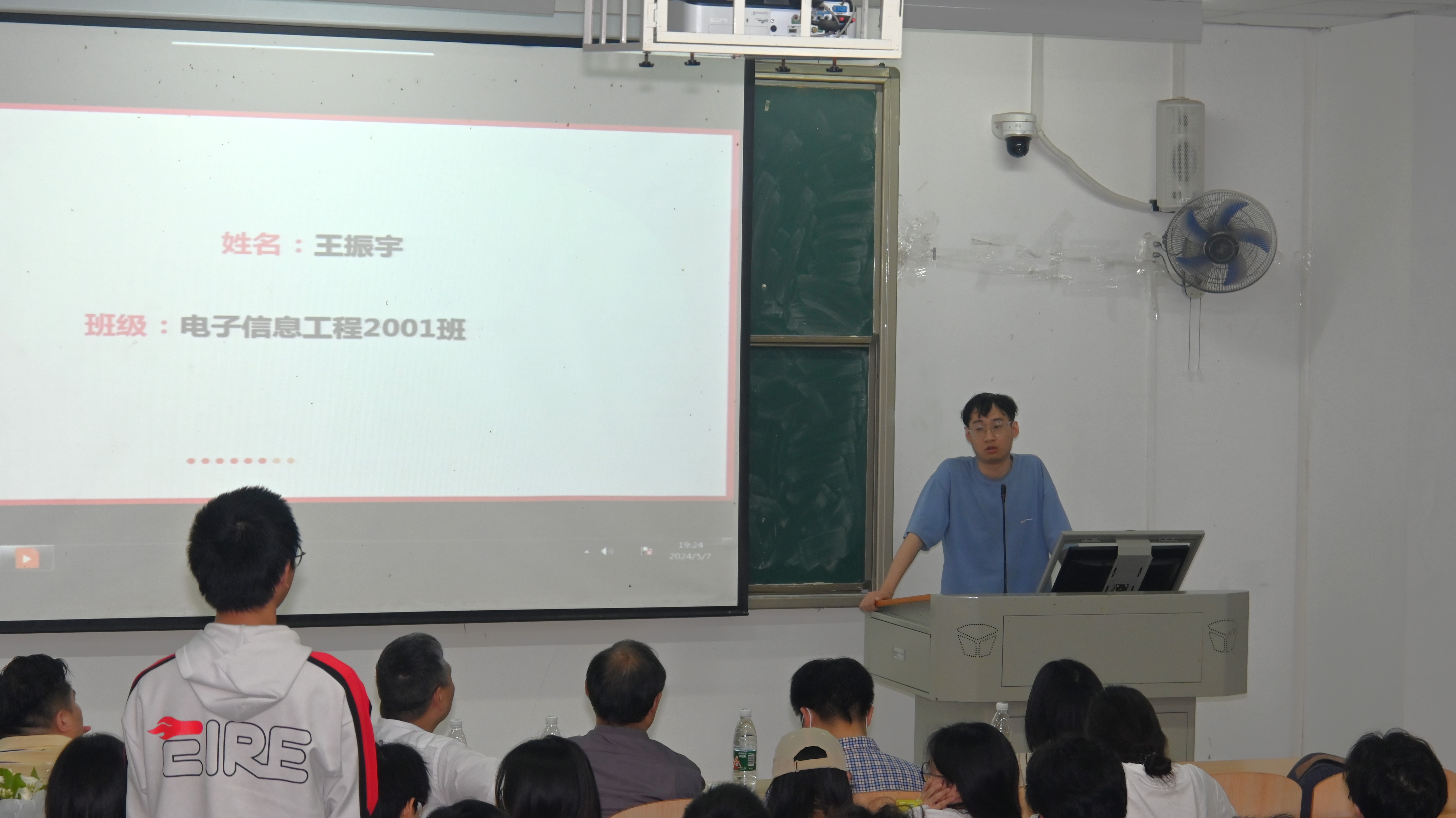 电子信息工程2001班王振宇同学,有着在腾讯、快手等互联网头部企业丰富的实习经历,他讲到自己从加入器乐社就开始寻找市场,后来就业面试成功应聘到腾讯视频号岗位,详实地叙述在了解市场中确定目标,在竞赛中获得实践经验,在读书中提升能力他强调,学历固然重要,但是在自己心目中,只要今天的我比昨天的我有进步就足够了,经年累月,几年之后再回头看,变化将是巨大的。