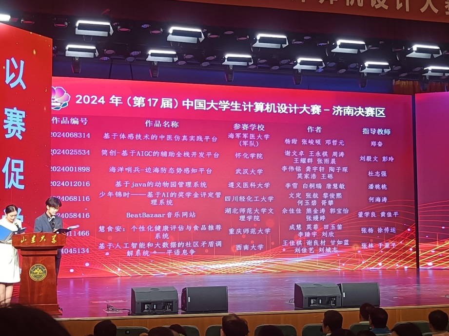 2024年第17届中国大学生计算机设计大赛于2024年7月22-26日在山东省威海市举行,本次会议由中国大学生计算机设计大赛组织委员会主办,山东大学、北京语言大学承办,并得到高寻真源(北京)科技有限公司、上海弘玑信息技术有限公司和南京秉蔚信息科技有限公司的大力支持。虎牙网页版学生佘佳佳在理工学部董学良老师的指导下,首次获得省级比赛一等奖并在国赛决赛中荣获三等奖。