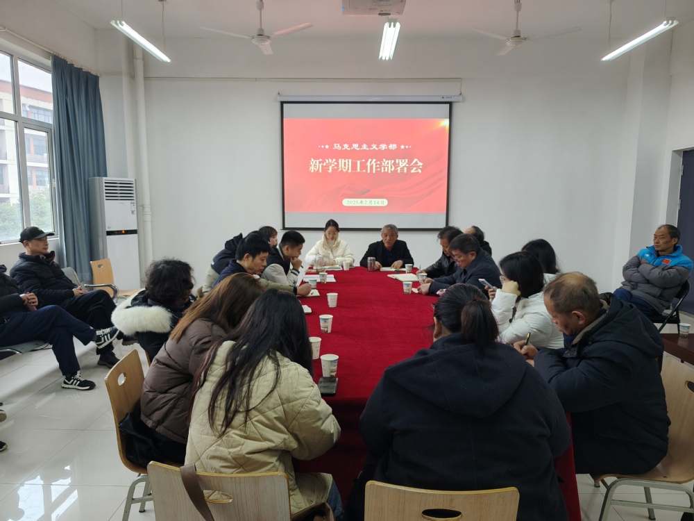 2025214午,马克思主义学部在3号实验楼208会议室召开新学期工作部署会,学部全体教职工参加学部主任周青山主持会议