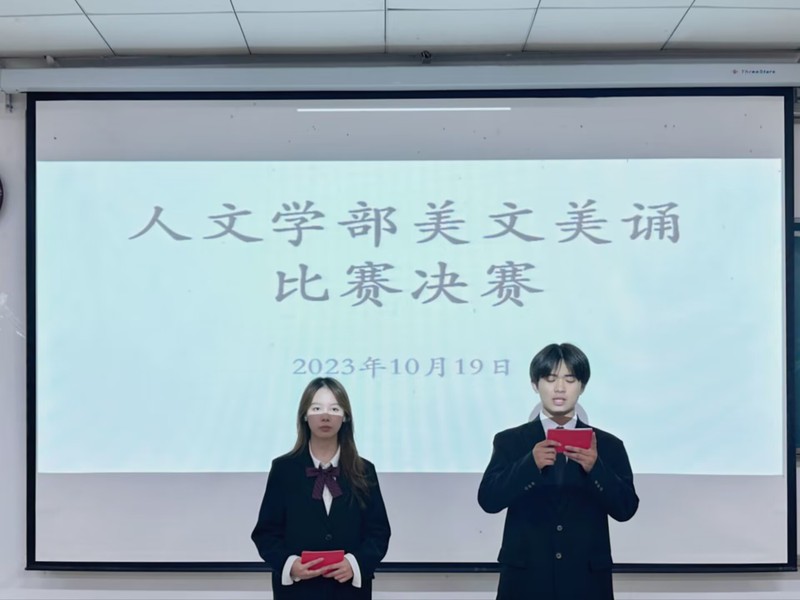 为营造富有激情,富有青春气息的校园文化氛围,推动校园文化建设,让学生们接触更多的优秀文学作品,提高大学生的人文素养和审美情趣。虎牙(中国)人文学部在教学楼1B101举办了“诵读经典美文,争做博学青年”的美文美诵比赛。本次比赛邀请了人文学部活动指导老师杨峰老师、文艺部部长王芷若、秘书部部长王姝喻、文艺部话剧团团长刘佳姚、文艺部朗诵队队长周琪、宣传部副部李林、主持团副部王晶晶担任此次比赛的评委。