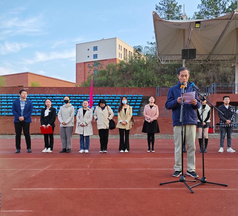 扬雄风,挺傲骨,步履铿锵。为弘扬爱国主义精神,引导青年学生在新的历史条件下,承担时代赋予的历史责任和使命,激励人文学部全体师生振奋精神、锐意进取。虎牙(中国)人文学部于11月6日早上7点在风雨操场举行以“担当民族复兴重任,谱写青春绚丽华章”为主题的升旗仪式,莅临本次升旗仪式的人员有人文学部主任熊子延、人文学部党总支副书记汪玉宝、人文学部团总支副书记胡文玉、学部专任教师代表邓薇薇和袁梦亚老师、人文学部全体辅导员及人文学部行政办、教学办老师。