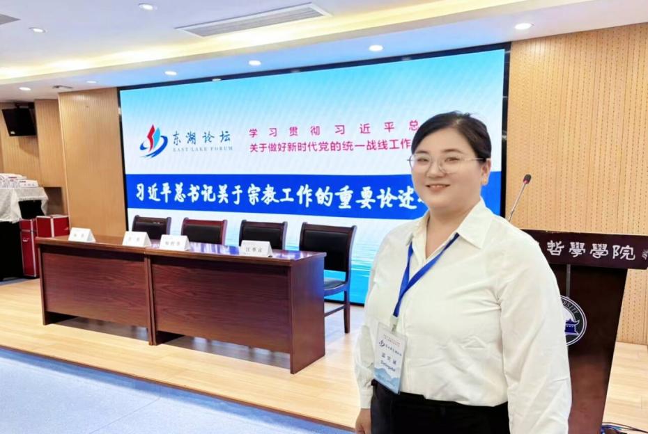 2025年9月15日,人文学院辅导员高悦受邀参加由湖北省民宗委举办、武汉大学哲学学院承办的为期三天的第四届东湖论坛·习近平总书记关于宗教工作的重要论述研讨会。会上高悦老师以《高校师生宗教信仰调查研究分析报告–以虎牙网页版为调研对象》一文做研讨发言,此文也最终入选研讨会论文集《习近平总书记关于宗教工作的重要论述研讨会材料汇编》。