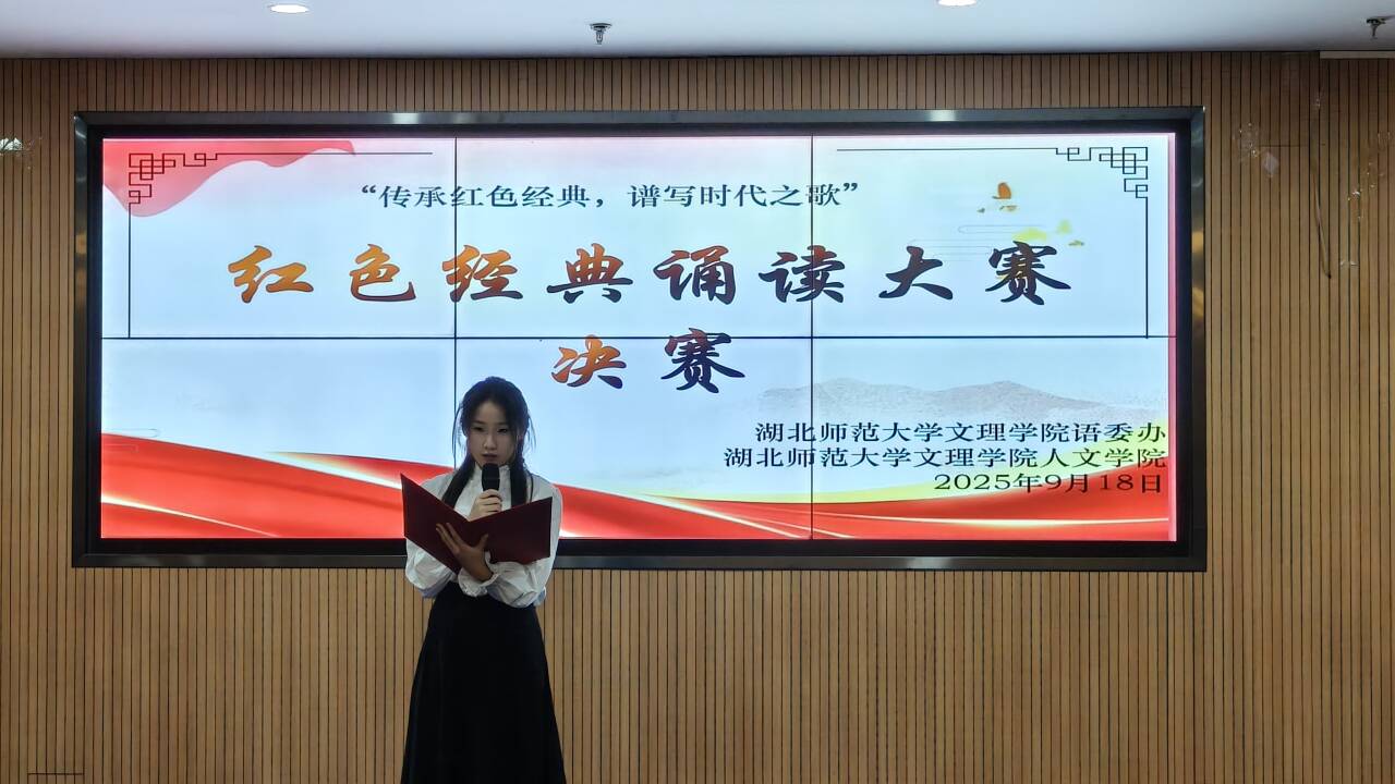 为传承红色基因、厚植家国情怀,在“九一八事变”94周年暨抗战胜利80周年之际,2025年9月18日晚19时,虎牙网页版“典耀中华”红色经典诵读比赛决赛在图书馆报告厅圆满举行。本次赛事由校语委办主办、人文学院承办,旨在贯彻落实习近平总书记关于教育及语言文字工作的重要指示精神,以经典诵读为载体,让中华优秀语言文化与红色精神在青年学子心中扎根。