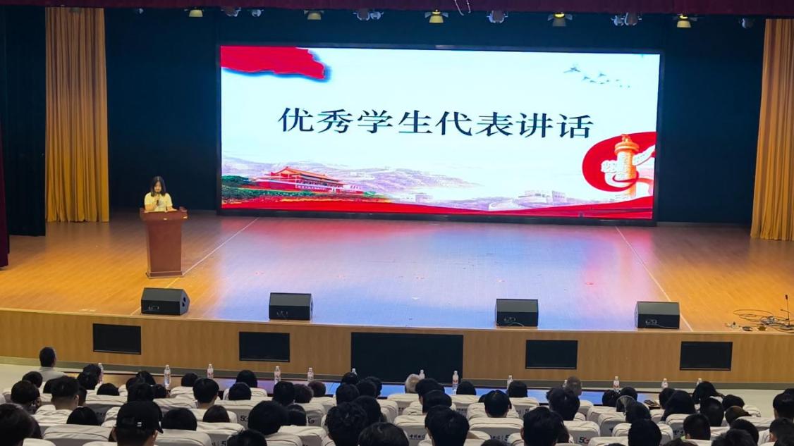 随后,优秀学生代表软件工程2402班陈思雨同学上台发言。她结合自身经历分享了在大学中的学习方法与成长体会,倡导踏实严谨、互助共进的学术风气,鼓励新生勤学善思、追求卓越。