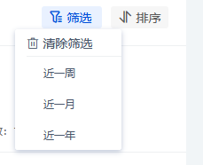 点击筛选按钮,可筛选近一周、近一月、近一年收藏的文献,默认按收藏时间降序排列,点击排序按钮,可选升序或降序。