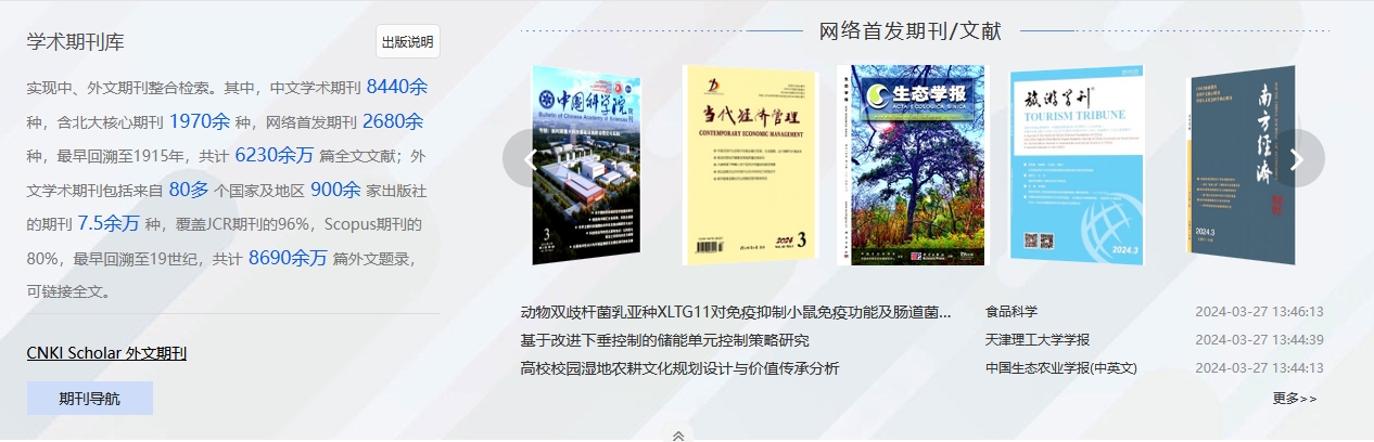 (7) 丰富各单库功能,专门设计产品宣介模块,介绍基本出版情况,反映产品内容特点,优化各单库检索和知网节功能。