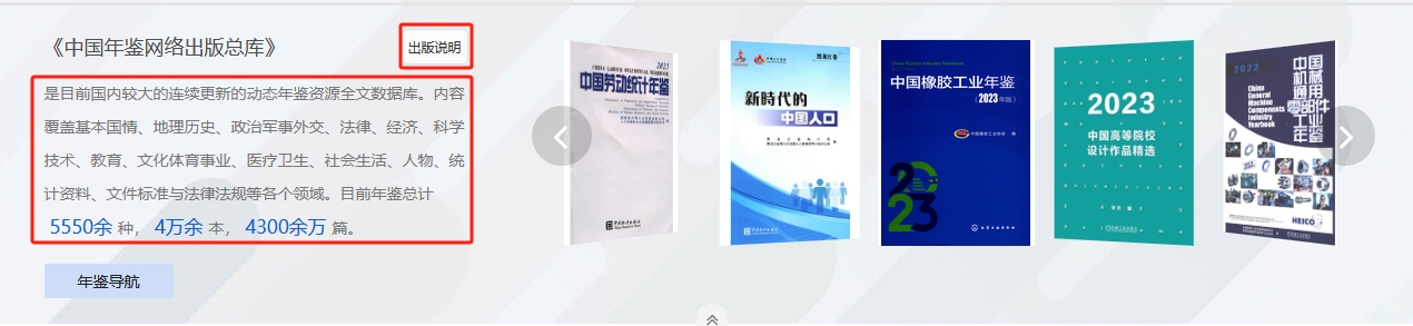 如图5.8.6.1所示,介绍信息展示本年鉴最新一年的基本信息。