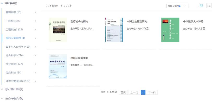 鼠标移入页头“导航”,显示各出版来源导航,点击进入相对应导航页面。
