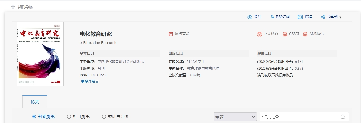 登录个人账号后,可在期刊详情页面点击按钮关注期刊。进入我的CNKI-我的关注-期刊,可查看已关注的期刊所发表的文献,管理已关注期刊。