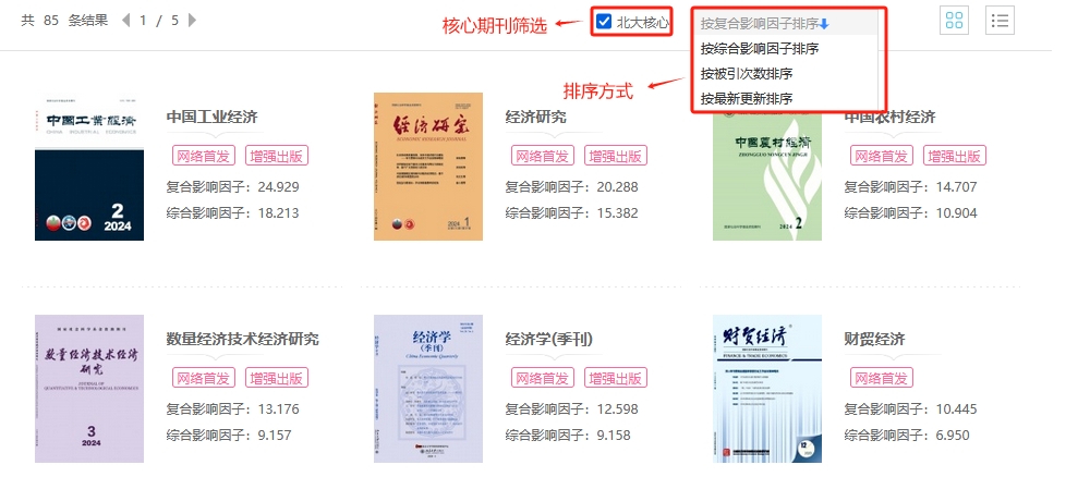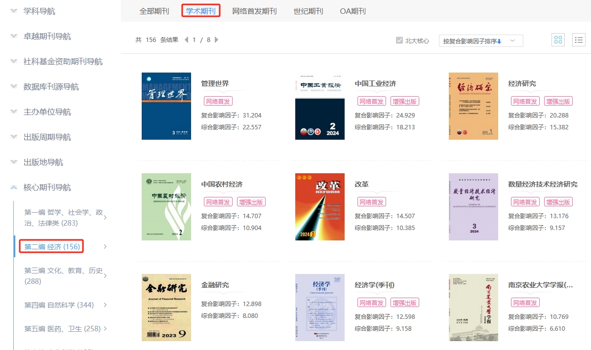 学术期刊库的期刊分组:按期刊的CI指数排序后显示。