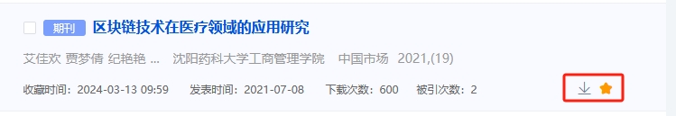 鼠标悬停到某篇文献,点击按钮可下载取消收藏该篇文献,如图6.1.2