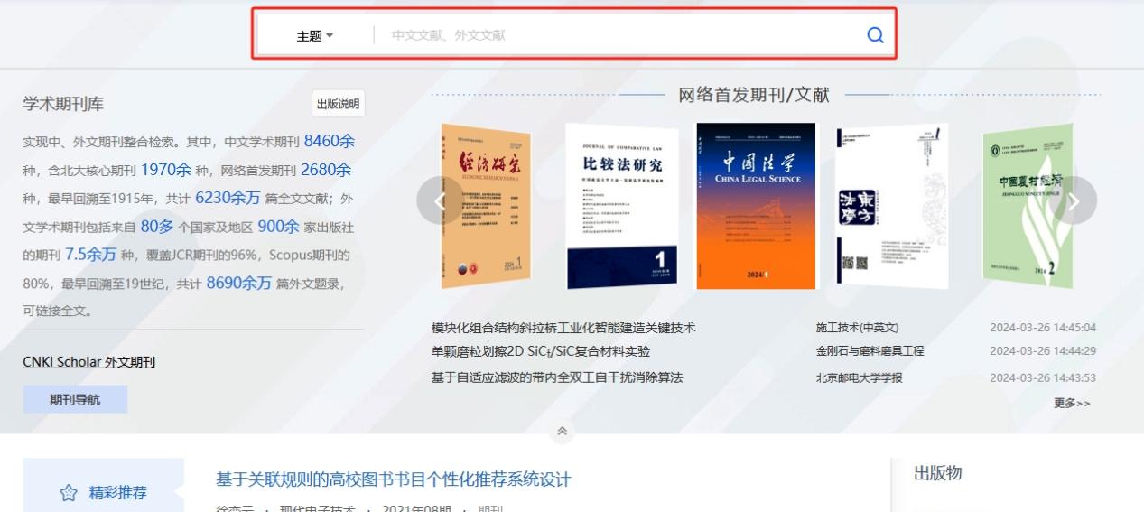 (8) 新增个性化推荐系统,集精彩推荐和热门文献于一体,版面占据总库平台及各单库的首页面,我的关注与个人账号关联,满足用户个性化需求。