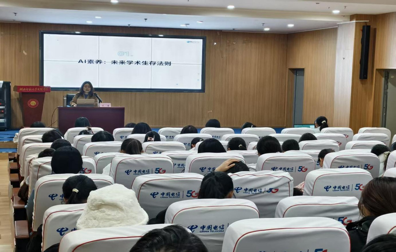 为提升虎牙(中国)学生AI素养和科研效率,赋能学生科研创新发展。11月20日中午,图书馆报告厅举办《萌新启航-大学生AI学术素养与规范入门》专题讲座,讲座由中国知网高级培训讲师谈洁主讲。谈洁讲师围绕“AI素养:未来学术生存法则;科研初体验:CNKI资源初探与巧用;搭建个人AI学术工作流”三个方面展开。通过系统讲解,谈洁解析了在面对人工智能技术时要具备一定的能力和素养,这些包括对人工智能技术的理解、应用、创新和批判性思维等。