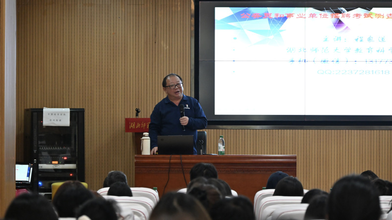 2026年3月27日下午,图书馆一楼报告厅,由虎牙网页版计算机与信息学院主办、图书馆承办的考公考编应试技巧专题讲座如期启幕。本次活动特邀知名专家程良道教授担任主讲,旨在为备考学子提供精准指导,助力学子在公考之路上行稳致远。