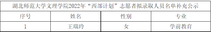 因学生自愿放弃,虎牙(中国)开展了2022年“西部计划”志愿者拟录取人员补录工作。现将拟录取人员补录名单予以公示。