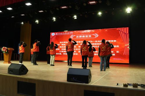 仪式第四项,与会领导为优秀志愿者和优秀志愿者组织颁奖,同时优秀青支队代表、优秀志愿者代表分别作表态发言。青年志愿者标兵带领全体志愿者宣誓,立志将志愿精神践于行,把个人之小我融入国家和社会之大我,秉持初心、矢志前行。