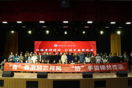 大会最后,各领导老师、志愿者合影留念。青衿之志,履践致远。此次大会的成功举办,进一步加强了学生弘扬雷锋精神的自觉性和主动性,积极发挥志愿者的先锋模范作用,让雷锋精神绽放更加璀璨的光芒,在建设社会主义现代化强国新征程中发挥重要作用。