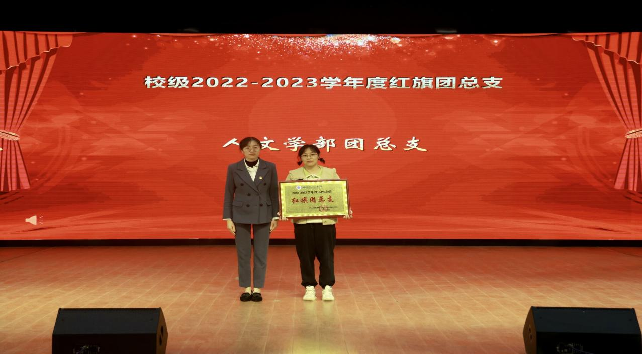 大会第五项,团委书记陈荟芸宣读关于表彰2022-2023学年度共青团先进集体和个人的决定。她宣读校团委决定授予人文学部五四红旗团总支荣誉称号,授予汉语言文学2001班团支部等6个团支部五四红旗团支部荣誉称号,授予程漫清等266名同学优秀共青团干部荣誉称号,授予陈董等357名同学优秀共青团员荣誉称号。同时她号召全校各级团学组织和团员青年以他们为榜样,坚定共产主义理想信念,自觉以实现中华民族伟大复兴为己任,为学校发展作出更大的新的贡献。