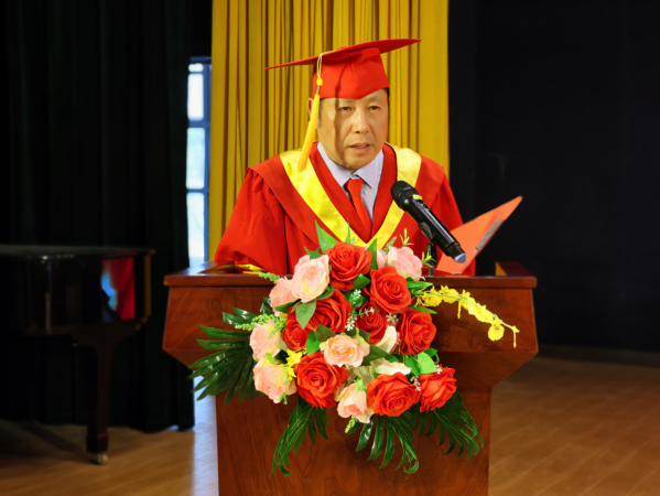 李开灿在讲话中代表学校向圆满完成学业的毕业生致以最热烈的祝贺,他表示,多年的求学生涯,同学们不仅具备了知识体系和专业能力,还收获了永生难忘、日久弥新的同学谊和师生情。在临别赠言中,他提出了三点希望:一是要胸怀天下,与时代同频,不断提升思想深度;二是要深学笃行,与社会共振,不断增强实践力度;三是要理性独立,与他人共赢,不断增加人生厚度。同时,他也希望大家奔赴新征程后能够不忘母校,常回家看看。