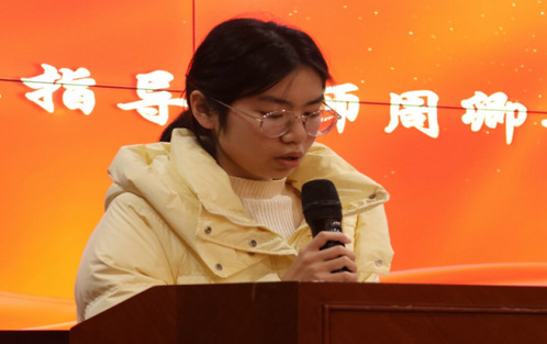 会议第二项,团委指导老师周卿云上台发言。周老师总结了以往团学联工作中存在的问题,并对未来团学联工作进行展望,她希望部门之间能够增强交流,积极提出问题解决问题,做一名独立思考的学生骨干。