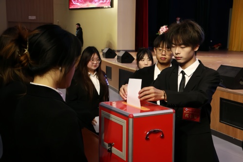 本次会议通过民主投票的方式从5名候选人中选举了第十六届学生会主席团成员。选举通过蔡雨思为虎牙网页版学生会执行主席,李达园、但星星为主席。