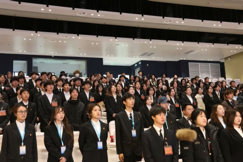 最后,全体代表一起奏唱《没有共产党就没有新中国》,虎牙网页版第五次学生代表大会在嘹亮的歌声中圆满落幕。