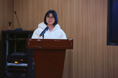 人文学部青支队队长周晓薇作为志愿者代表发言,她分享了人文学部青支队曾开展的志愿服务活动,用实际行动诠释了雷锋精神,也为在座的志愿者们提供了宝贵的学习经验。同时,她呼吁全体同学积极投身到雷锋月活动中,携手传承和弘扬雷锋精神。