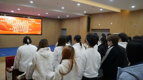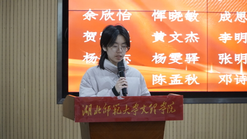校团委指导老师徐乐进行致辞。她首先对新团员的加入表示热烈祝贺,并肯定了他们的选择对于团组织和自身成长的意义。徐乐老师对新团员提出了殷切希望,勉励我们将光荣化为动力,以实际行动回应时代召唤。最后,她鼓励大家珍惜荣耀、勇担责任,从新起点出发,以奋斗之姿书写无愧于时代和青春的篇章,努力成长为新时代好青年,为中华民族伟大复兴贡献青春力量。