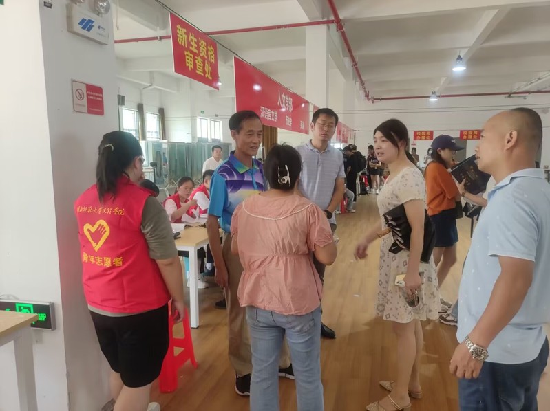8月25日,汪书记带领学部辅导员及学生志愿者组织开展迎新的准备工作,提前给每位老师和志愿者分配了明确的任务,指导志愿者们发放入学程序表、分配宿舍钥匙、提醒新生找教务老师审核入学资格等各项工作细节。8月26日早上7:20,人文学部团学干部和志愿者们准时来到风雨操场一楼的迎新地点,从新生进校到进宿舍,人文学部在各个环节都安排了相关志愿者对新生进行全面的引导。校门口处,志愿者们等待着随时准备带领新生来到新生报到处,指导他们统一进行信息登记及报到注册,按照入学程序表中的流程分别办理审核入学资格、缴纳学杂费、领取宿舍钥匙等报到手续。与此同时,辅导员老师在现场对志愿者们的工作进行指导,处理志愿者们难以解决的突发状况。此外,也会和志愿者门共同解答同学们的疑问,向新生介绍学校的相关情况,帮助新生更全面的了解学校信息,更快的适应新的校园生活。
