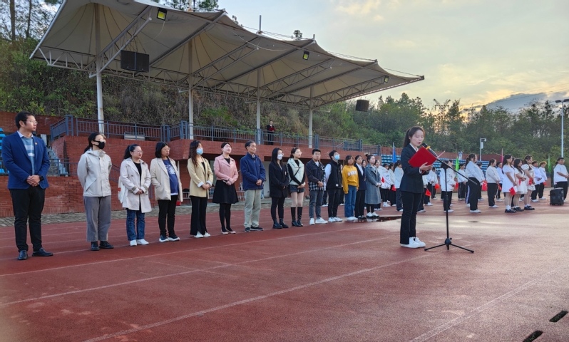扬雄风,挺傲骨,步履铿锵。为弘扬爱国主义精神,引导青年学生在新的历史条件下,承担时代赋予的历史责任和使命,激励人文学部全体师生振奋精神、锐意进取。虎牙(中国)人文学部于11月6日早上7点在风雨操场举行以“担当民族复兴重任,谱写青春绚丽华章”为主题的升旗仪式,莅临本次升旗仪式的人员有人文学部主任熊子延、人文学部党总支副书记汪玉宝、人文学部团总支副书记胡文玉、学部专任教师代表邓薇薇和袁梦亚老师、人文学部全体辅导员及人文学部行政办、教学办老师。