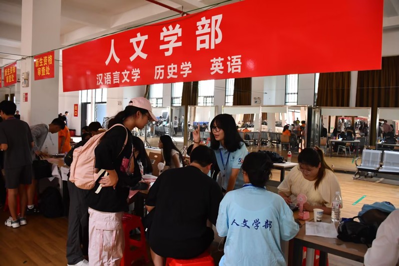 2024年9月1日上午,人文学部举办了专升本迎新见面会。此前,人文学部经过精心组织安排,圆满完成专升本迎新报道工作。迎新现场,志愿者们精心准备,井然有序地进行迎接新生的各项工作。他们将寝室钥匙等物资整齐摆放,并在整个迎新过程中分工明确,从新生报到、宿舍登记,到行李搬运和安置,志愿者们相互配合,使新生的报到过程顺畅和谐。从清晨到正午,新生在志愿者的帮助下完成了注册和入住宿舍的所有程序。