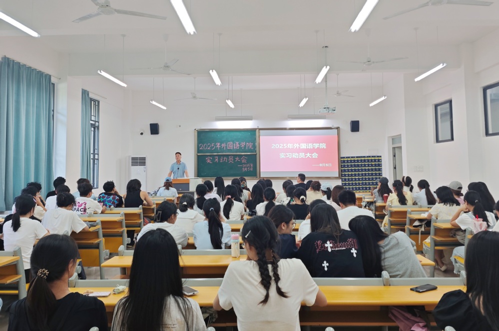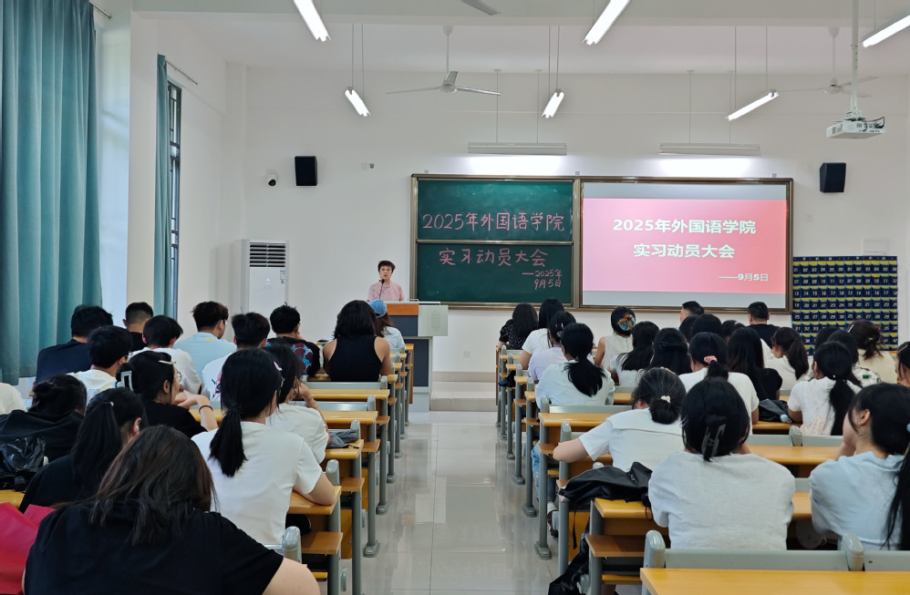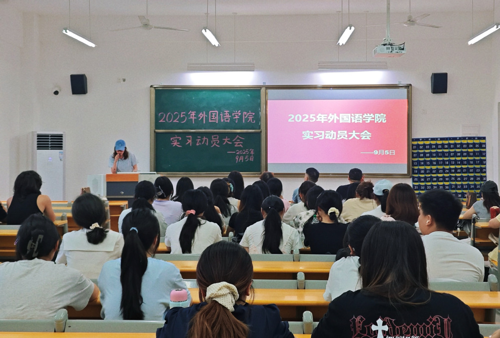 为扎实推进2022级毕业生实习工作,引导学生明确目标、安全上岗、快速转型,95日下午 14:30,外国语学院2022级毕业生实习动员大会在J3-101教室顺利举行。学院院长郑桃云、党总支书记赵卫军、实习指导老师丁雪缘、学工办负责人张一能及全体2022级毕业生参会,大会由辅导员汪宜心主持。