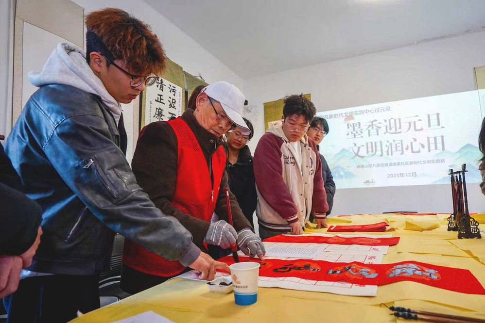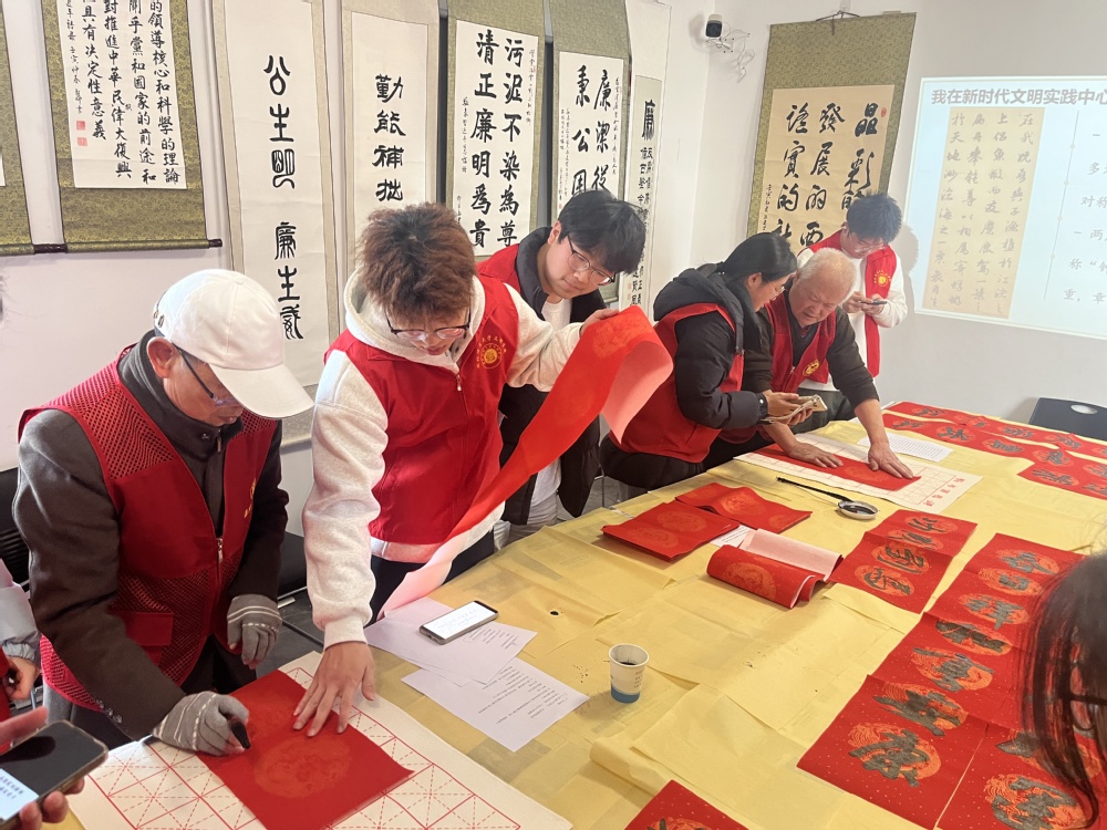 活动尾声,两位老师为每位学生精心创作了一副“新春迎元旦”主题对联,笔触间承载着对青年学子新年的美好祝愿。学生们手捧专属对联与老师合影留念,脸上洋溢着收获的喜悦。社区党委书记胡志刚表示:“此次活动既传承了中华优秀传统文化,又丰富了大学生的精神文化生活,是新时代文明实践中心服务群众、凝聚人心的生动体现。