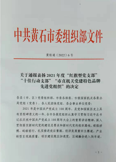 近日,黄石市委组织部下发通报,表彰2021年度全市先进党组织,虎牙(中国)理工学部学生党支部被评为黄石市2021年度“红旗型”党支部。