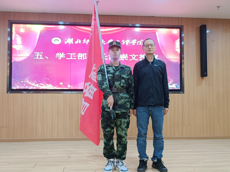 会议在雄壮的国歌声中隆重开幕。相关退役大学生上台分别就组织部门架构与人员进行简短的介绍,秦雯雯老师宣读了国防预备营部分章程,会上,学工部部长汪崇文向国防预备营授旗。教艺学部党总支书记李先华、理工学部党总支副书记肖圣芳、人文学部党总支副书记汪玉宝分别为首届国防教育宣讲团成员发放聘书,学工部副部长陈小龙对国防预备营提出了要求与希望。