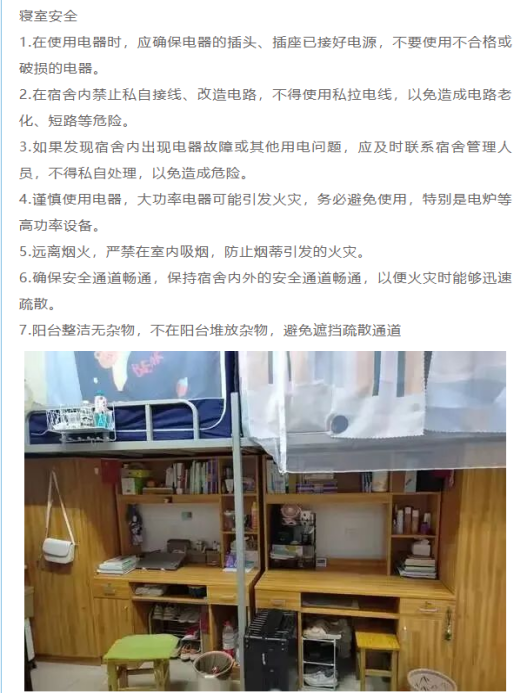 宿舍送暖——为强化学生宿舍安全保障,学生返校后学工系统人员及全体辅导员深入学生宿舍,排查消防安全和传染病传播等安全隐患。重点排查是否存在擅自破坏限位器、私拉乱接电线、使用大功率电器、堆放纸箱饮料瓶等易燃物品等问题,并就发现的安全隐患进行督促整改。同时,倡导学生“断舍离”,对久置不用、季节性更替的物品通过转赠、二手售卖等方式及时处理,有效解决宿舍毛绒玩具、旧书旧本、鞋帽衣服等过多堆砌的问题。