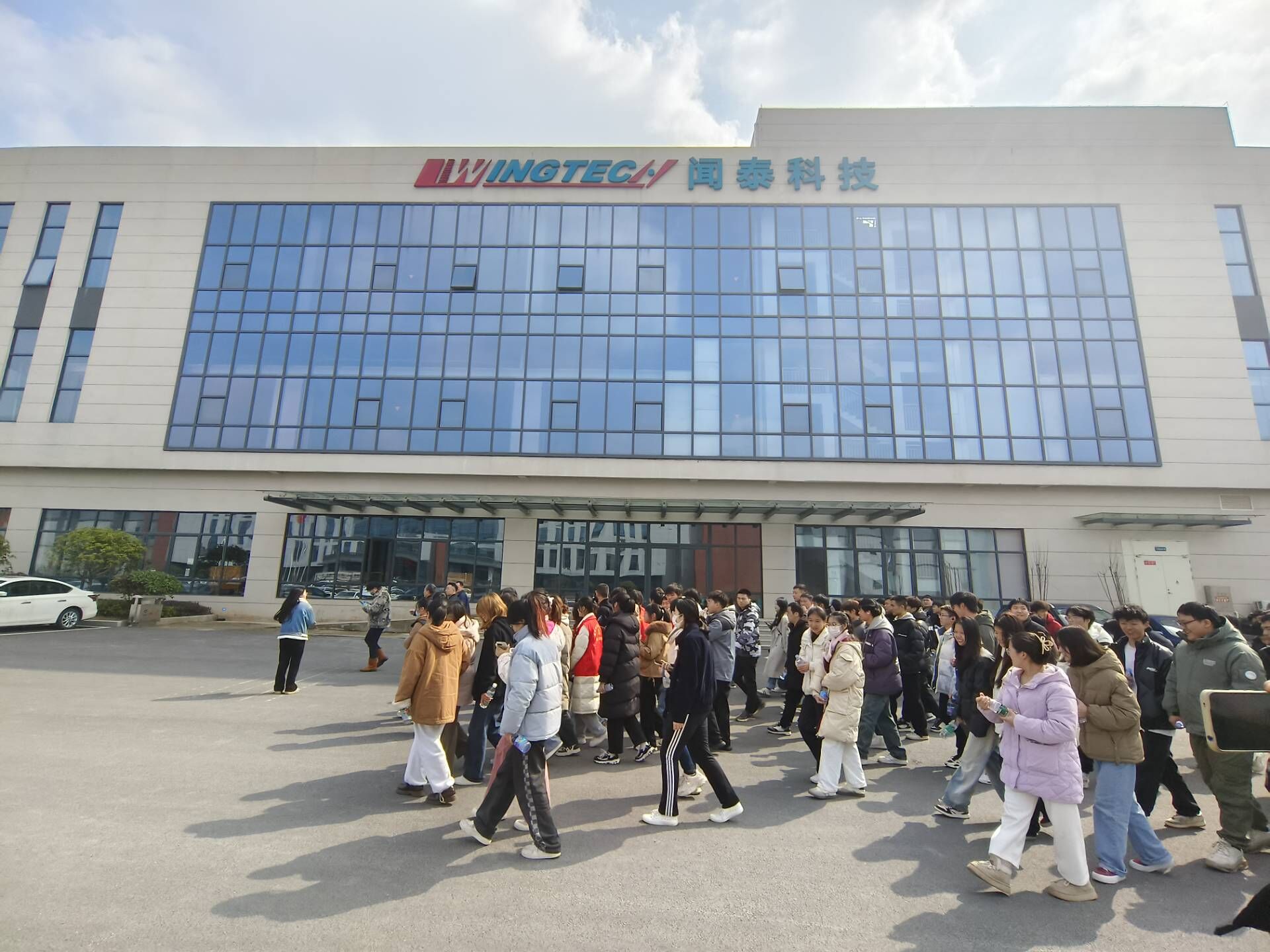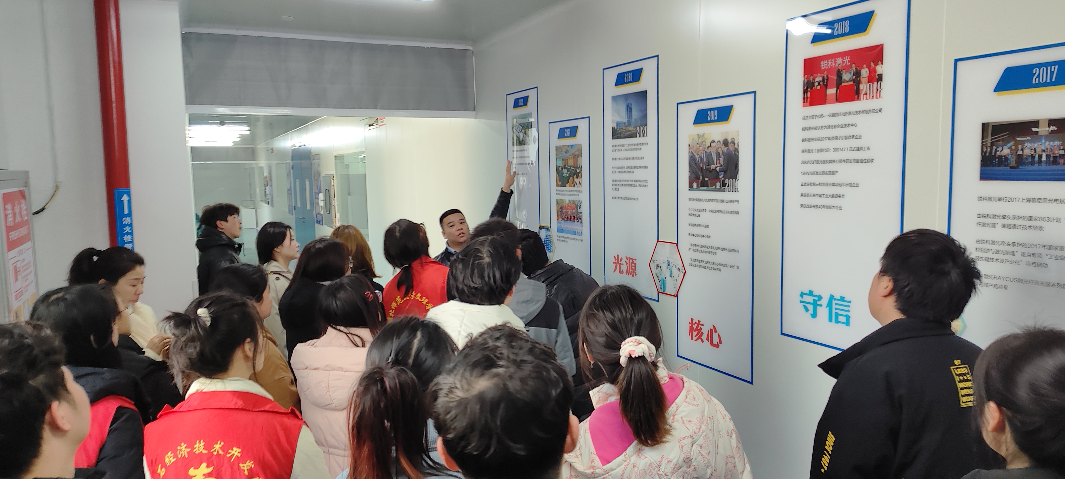 在闻泰集团人事部刘专员讲解引领下,众师生一行参观了闻泰园区、展厅、食堂及职工宿舍并组织观看了闻泰集团的企业宣传片,使学生了解半导体IDM、光学模组、通讯产品等产业链布局。随后,参观了智慧光子集团:通过观摩展品,认识了精密零器件的奥妙。通过参观车间生产线,知晓了现代化管理标准。人事资源部曹部长通过宣讲会,一起回顾了集团艰苦创业的历程,阐释了光纤激光器的进展,读懂企业对“锐意进取,科技创新”精神的认识,增加了对企业的认同感。最后,开铁区人才中心叶局长给学生们派发了小礼品。