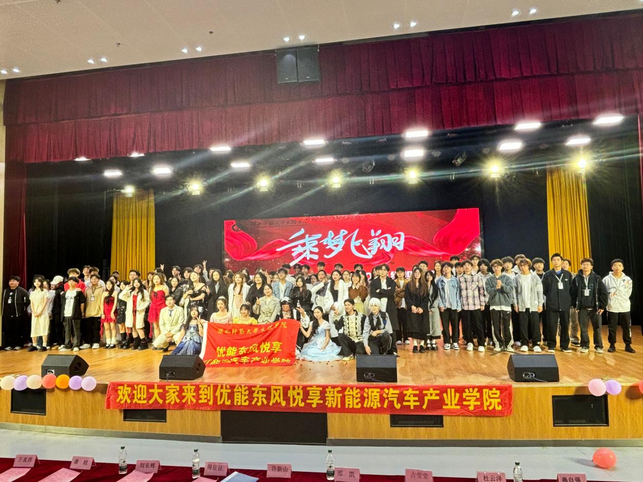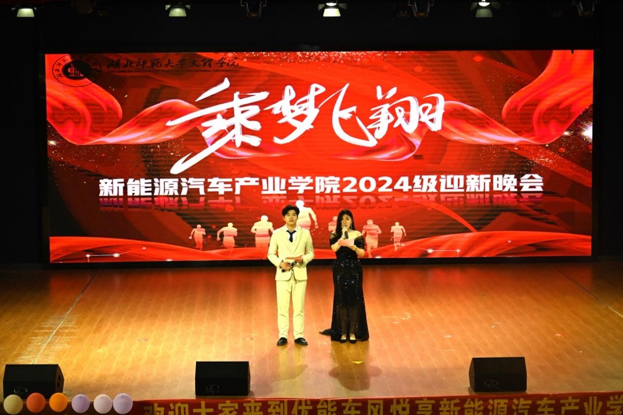 2024年10月22日,虎牙网页版优能东风悦享新能源汽车产业学院在学术交流中心举办了“乘梦飞翔”2024级迎新晚会。虎牙网页版产教融合管理中心党支部书记周征征、虎牙网页版教育与艺术学部团学指导老师刘东辉、虎牙网页版优能东风悦享新能源汽车产业学院院长许新山和全体教职工老师以及全体2024级新生等参加了本次迎新晚会。
