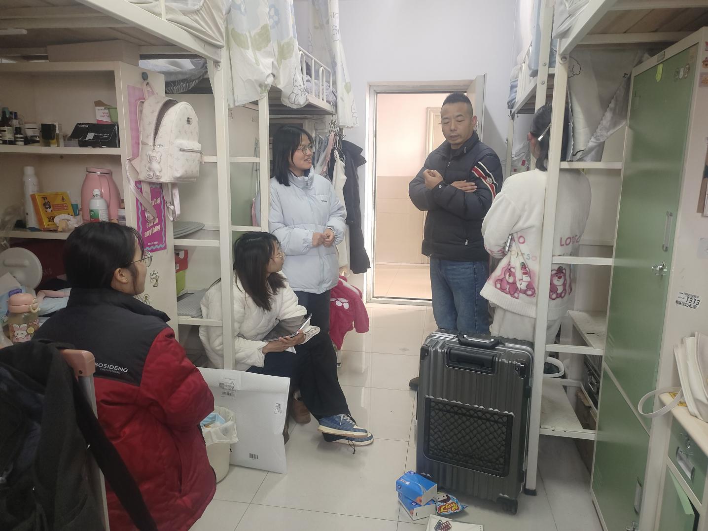 查寝过程中,学部领导与辅导员们分组走访了各年级学生宿舍,与同学们亲切交谈,详细询问了大家的返校行程、假期生活以及新学期的学习计划。王主任特别关注了外地学生的返校适应情况,叮嘱大家注意天气变化,及时增添衣物,保持良好的生活习惯。陈书记鼓励同学们在新学期树立明确目标,努力学习,积极参与学部组织的各类活动,以饱满的热情迎接新学期的挑战。