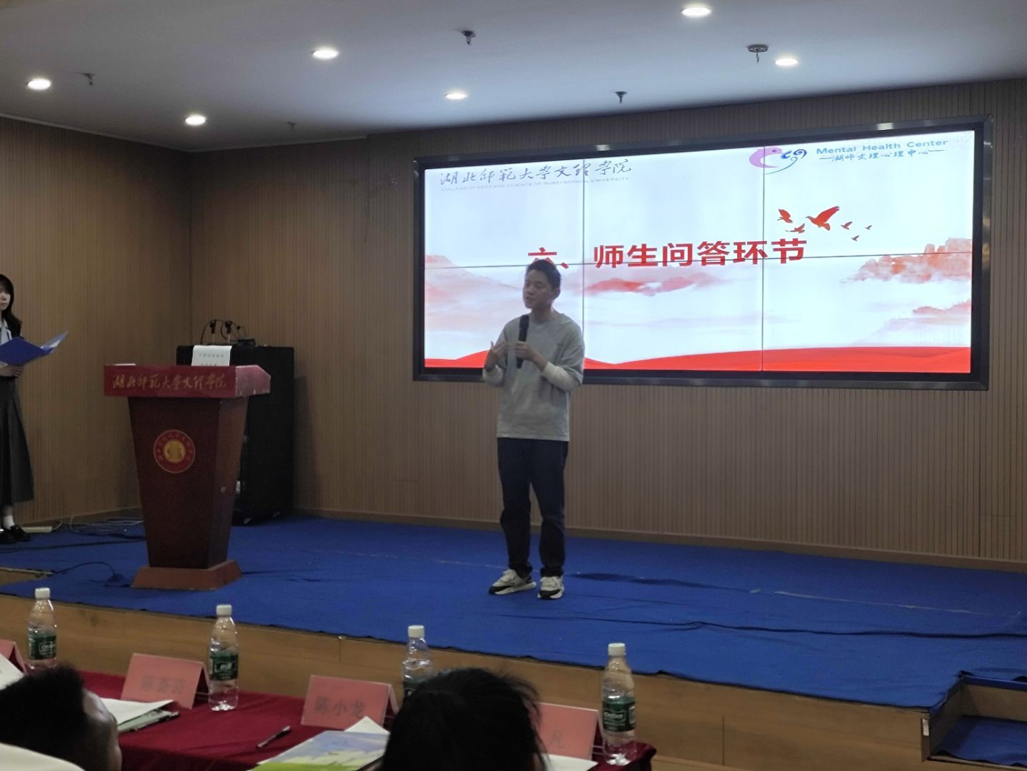 最后,心理中心甘伟老师主持第六期《晓心》期刊发布会。通过介绍创刊初心,期刊的意义和价值,以及期刊的发展历程、内容等,阐释“观天下乃知我,历红尘方晓心”的深刻内涵,并回答了现场同学的提问。由同学演唱结束曲《我是如此相信》,各领导在期刊上签字留念。