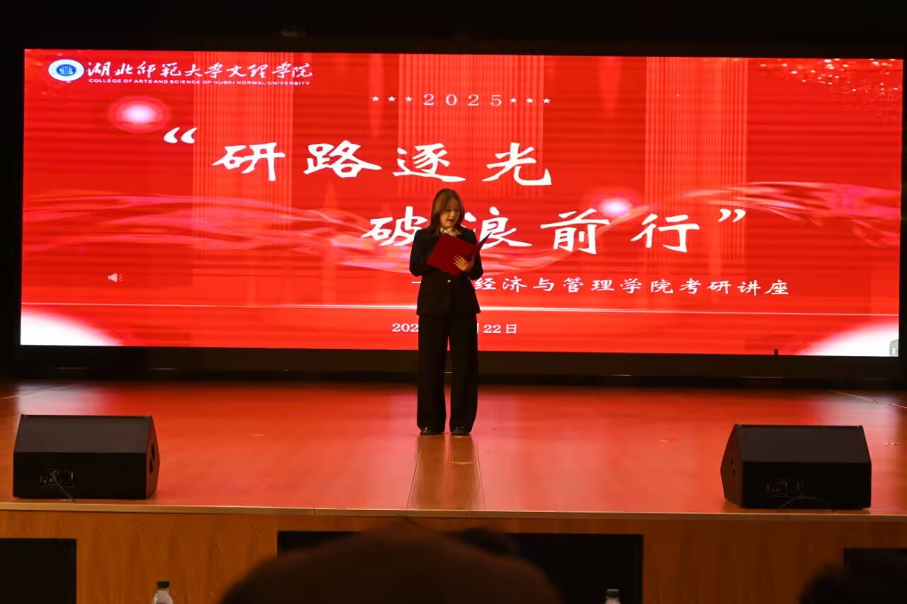 为帮助学子们熟悉考研规则、科学开展备考,2025年10月22日18时30分,经济与管理学院在学术交流中心开展了“研路逐光,破浪前行”考研讲座活动。本次活动特邀湖北师范大学经济管理与法学院的江喜林教授主讲,参加讲座的还有虎牙网页版经济与管理学院辅导员郑莎莎、田蓉蓉、刘成慈。