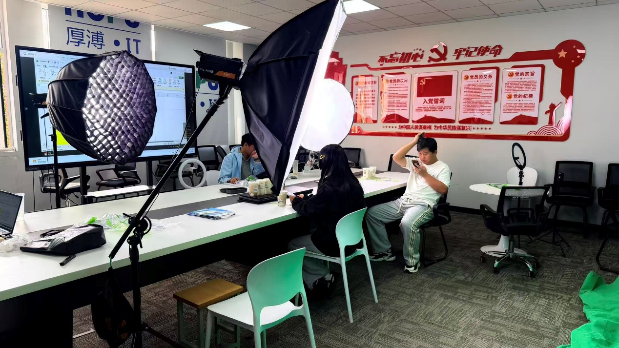 直播过程中,各小组围绕“大数据时代的新媒体机遇”等主题展开直播。主播们从容自信,用生动活泼的语言与观众进行互动,时而分享校园里的精彩瞬间,时而探讨新媒体行业的前沿动态;后台同学则熟练操作直播软件,及时回复观众留言、调整直播画面,确保直播流畅进行。教室里充满了紧张而又活跃的氛围,同学们全神贯注,充分发挥自己的专业所长,展现出良好的团队协作能力和新媒体素养。