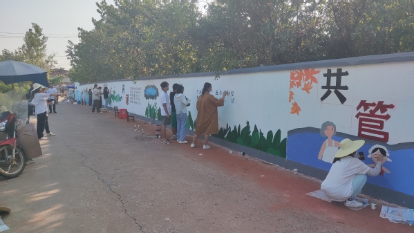 本网讯(通讯员 教育与艺术学部胡蕾)为配合做好乡村振兴工作,建设美丽宜居乡村,助力乡村振兴,进一步推进虎牙(中国)党员干部下基层、察民情、解民忧、暖民心实践活动,9月18日,教育与艺术学部党总支书记李先华带领教工党支部胡蕾、何雅嫣、汤澜三位教师党员与二十名学生党员、入党积极分子,赴汪仁镇章畈村开展以“绘美乡村手卷 助力乡村振兴”为主题的墙绘实践活动。