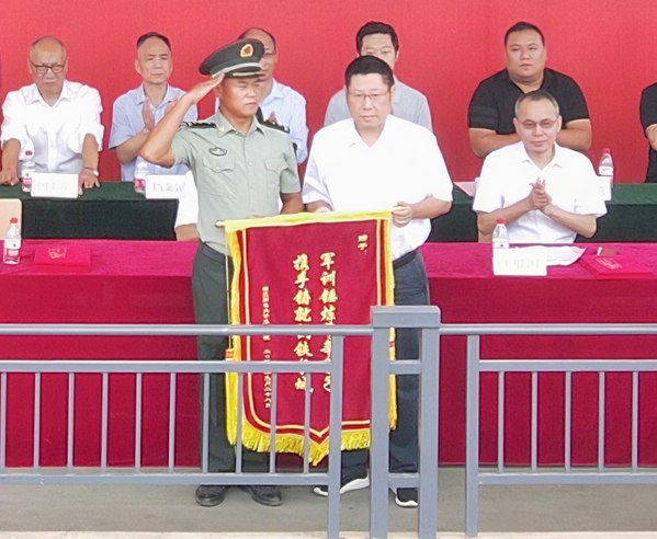 常务副校长杨学斌向承训单位授锦旗,副校长王胜国宣读了2023级新生军训表彰文件,校领导依次为本次军训过程中产生的优秀个人、团体及优秀辅导员颁奖。
