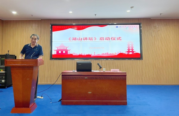 本网讯 为全面贯彻落实党的教育方针,进一步提升大学生的人文素质和科学素质,以培养人为核心,锻造具有良好个性、健全完善人格、开放精神和开拓创新意识的时代新人,学校党委宣传部、校图书馆联合举办的“湖山讲坛”于9月27日在图书馆报告厅启动。启动仪式由图书馆馆长郑荣臻主持。