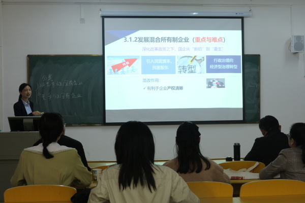文华学院谭晶老师、武汉城市学院张航程老师和武汉纺织大学外经贸学院杨红老师分别进行了课堂教学展示并分享了她们各自的参赛经验。听课老师就参赛材料准备、教学内容选择、课堂教学如何融入课程思政和数字化教学的合理运用等内容与三位新秀奖获得老师进行了交流。